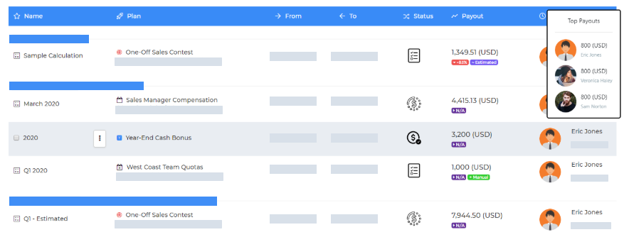 Once you've imported sales transactions and configured your incentive plans, you can submit them for calculation. We will process all eligible sales transactions and credit the right users / teams / territories. We will then compute and assign rewards to beneficiaries (as per your configured thresholds and reward assignment policy). Rewards aren't limited to monetary ones - they can be something else (ex: congratulatory emails, badges, prizes).